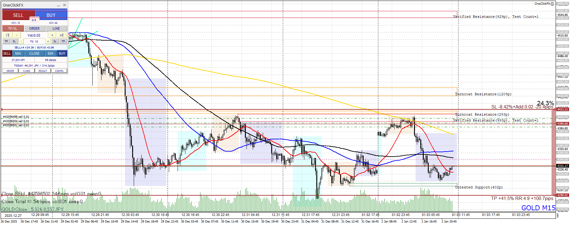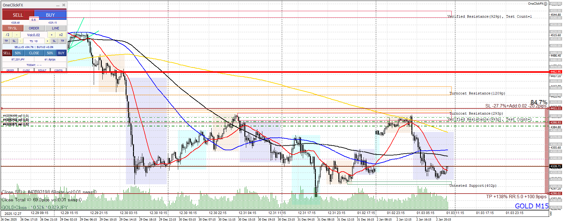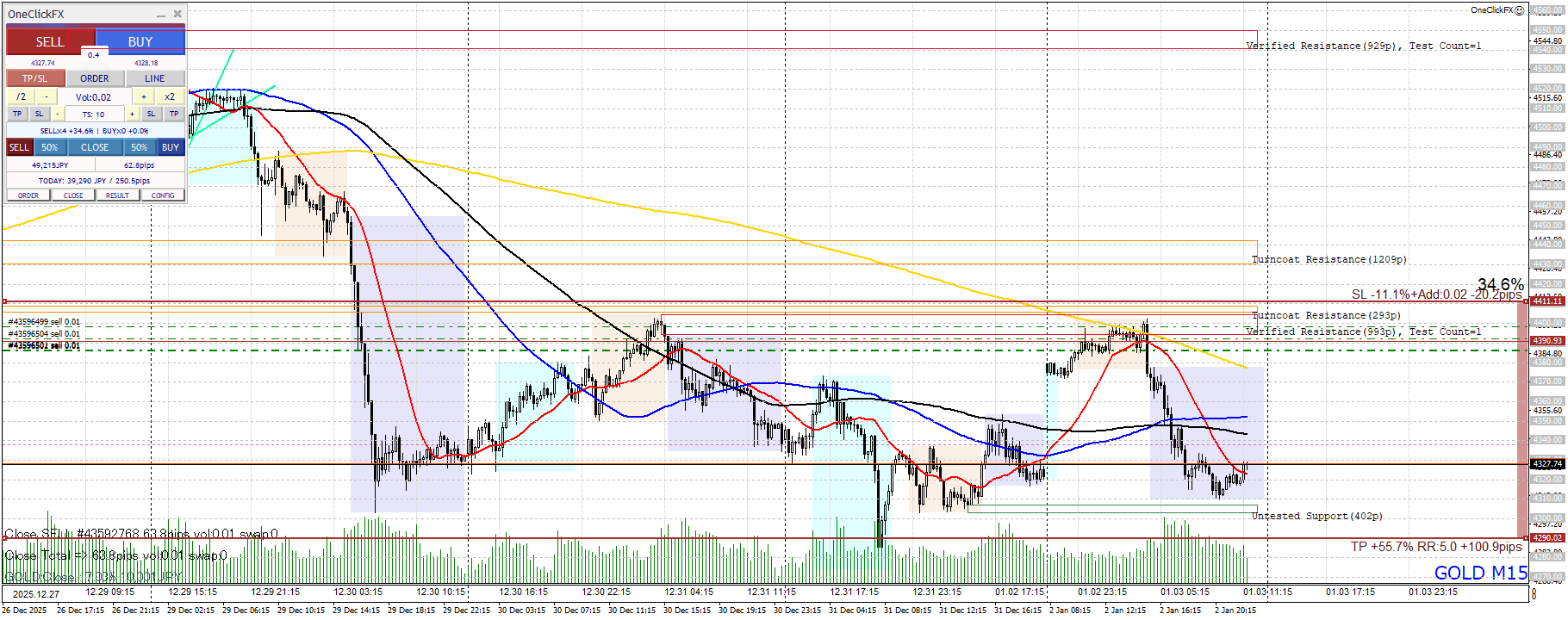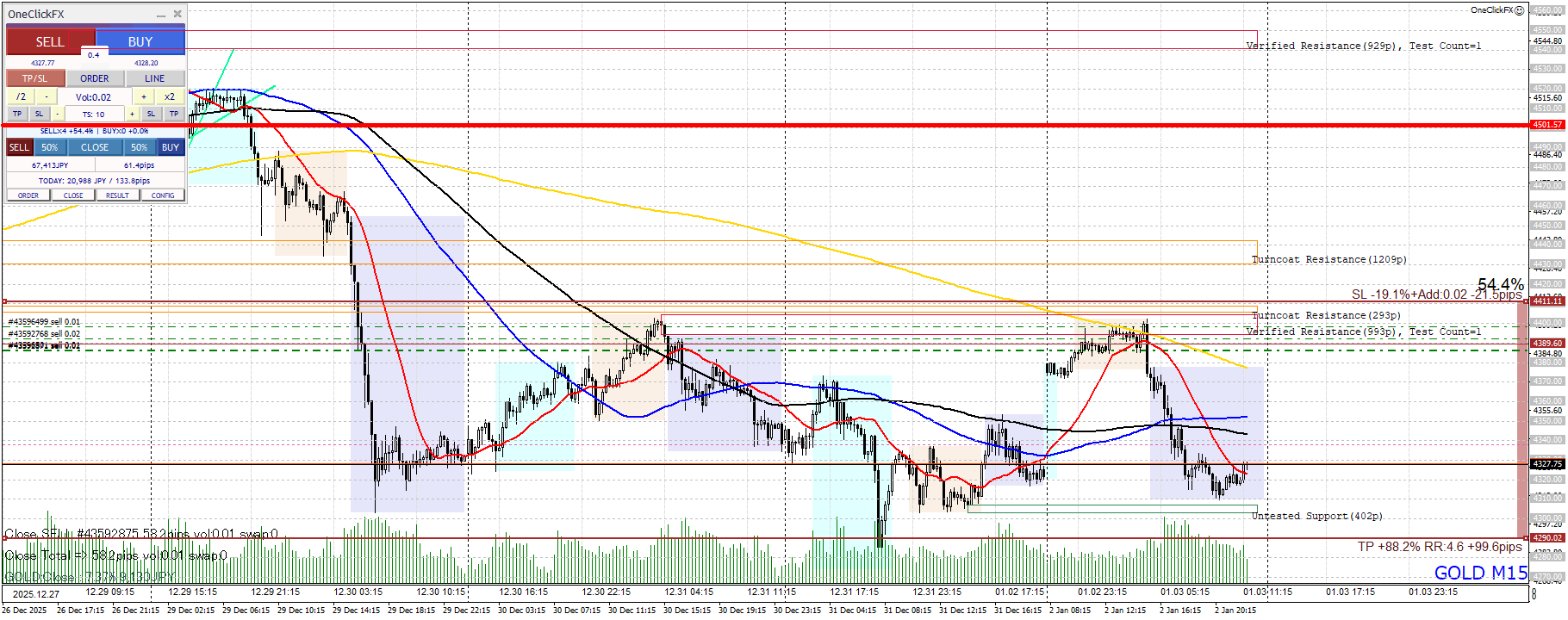 ä»åã®ãã¬ãŒãã¯ãGOLDã®ã·ã§ãŒãããžã·ã§ã³ã§æåãåããŸãããç¹ã«ãæ³¢åã®ãªãºã ãèŠæ¥µããããšãšãåå²ãšã³ããªãŒã«ãã粟床åäžãåå ãšããŠæããããŸããããããããããµã€ãºãé倧ã§ãã£ãããšããªã¹ã¯ç®¡çã®èª²é¡ãšããŠæµ®ã圫ãã«ãªããŸãããRRã3.09ãšé«ãã鱿¬¡ã»ææ¬¡ã®å¹³åRR 2.05ã倧ããäžåã£ãŠããŸããããªã¹ã¯ç®¡çã®æ¹åãå¿